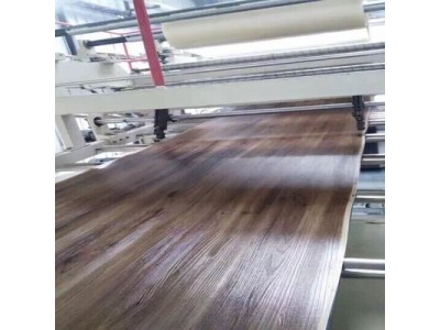 新型PVC石塑地板同步對花生產線由自動上料進入高速混料機、高速熱混、冷混,可再配五噸儲料罐及每個進料囗配上環保吸塵系統(使車間無灰塵)、再自動上料到雙螺桿擠出機、由大板模具結構出料進行四輥定型、壓光、壓花其間表面多層膜同時進入五輥熱粘合于一體),排輥托架冷裝置、裁邊裝置、牽引切割機、自動剪板機、自動堆板機等組成。機組結構緊湊,性能優越。螺桿、料筒經優化設計,并采用高性能雙合金鋼專業加工,使整機具有塑化均勻,擠出量穩定,產量高,壽命長等優點。主機料筒采用鑄鋁加熱器加溫,風冷卻,精密電腦屏控制溫度。精密的定型壓光裝置,通過其良好的調整功能使板材定型優良。切割部分采用定長切割裝置,保證板材長度準確。