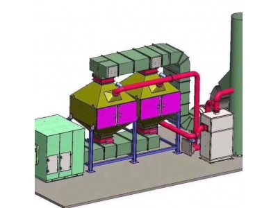 催化燃燒設備的燃燒過程和催化劑的使用 定制各種風量工作原理:該系統工作過程主要劃分為三種狀態參數設定、燃燒運行和燃燒停止。1.參數設定狀態此狀態為燃燒工作之前做好數據的準備。可根據需要分別設定點火溫度和變頻器起動時的頻率,控制風機的風量。點火溫度是為了保證點火過程的可靠性。起動頻率保證催化燃燒器在剛點燃時的有焰燃燒,這時的燃燒比不易太低,風量不能過大。2.燃燒運行狀態(1)燃燒起動過程當控制系統在待命的狀態下,接到輸入的起動命令,將進入燃燒運行狀態,首先是控制系統進行自檢,之后進行前吹掃,變頻器輸出信號控制風機的旋轉,空氣風量由低速漸變為高速再逐漸變為低速,新鮮空氣風吹過燃燒爐盤,以保證爐內沒有殘留燃氣的存在,保證點火過程的安全可靠。具體操作是變頻器先起動,PLc模擬輸出信號使變頻器頻率從起動設定頻率開始上升,達到一定頻率后保持一定時間后再下降,完成起動前的吹掃。之后,發出點火信號,高壓點火器工作,同時打開點火管道的閥門,小火點燃。通過紫外線傳感器的檢測到期小火點燃后,打開主燃氣閥門。這時催化燃燒爐盤進行有焰燃燒,直到檢測溫度信號達到設定的點火關閉溫度,點火閥門關閉,完成點火過程,進入到燃燒調節階段。(2)燃空比的調定有文獻表明,催化燃燒時的“燃氣/空氣比值”范圍一般在4%~11%之間;在一定的燃燒條件之下,燃/空比為6%時,天然氣就能實現較好的催化燃燒效果,燃燒系統就可以得到*大的熱效率,同時又能取得較好的排放效果。