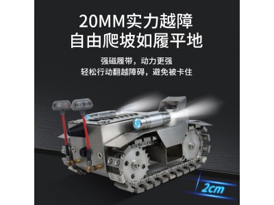 如中央空調清洗機器人K6用于風系統主風管道清洗,刷頭可以進行360度旋轉,可以全方面清洗管道內部,并附帶自主吸塵功能,一遍清洗塵埃一遍吸塵,方便快捷、前后LED燈,前后攝像頭,可在操作臺實時看到管道內部進行操作,操作臺有錄像功能,可記錄清洗后的效果,和操作過程。