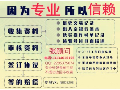 挽回損失咨詢張顧問咨詢微信:13134016156 qq:2295375074