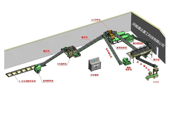 3、原料造粒: 將攪拌均勻的原料送入造粒機造粒(可用轉鼓造粒機,也可選用擠壓造粒機)。