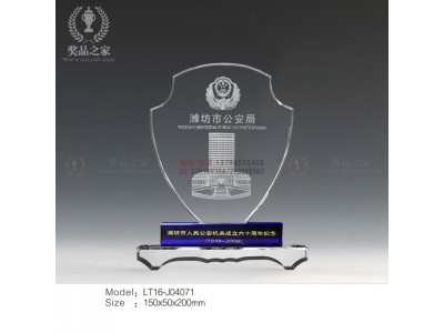 水晶獎杯獎牌:是一種高尚純潔的象征,常用于政府和企業頒發的獎品。它晶瑩剔透,閃閃發光,手感細膩,還可以在上面刻字、紋圖案。用的材料水晶---像冰雪一樣的干凈。用它來做獎品給優秀的人是好不過了。 材質:選用K9一級人造水晶 生產工序一共有:開料、壓胚、粗拋光、細拋光、打孔、雕刻、噴砂、粘膠、質檢、包裝