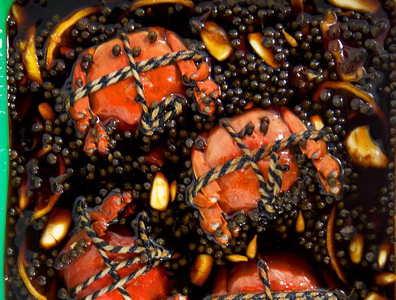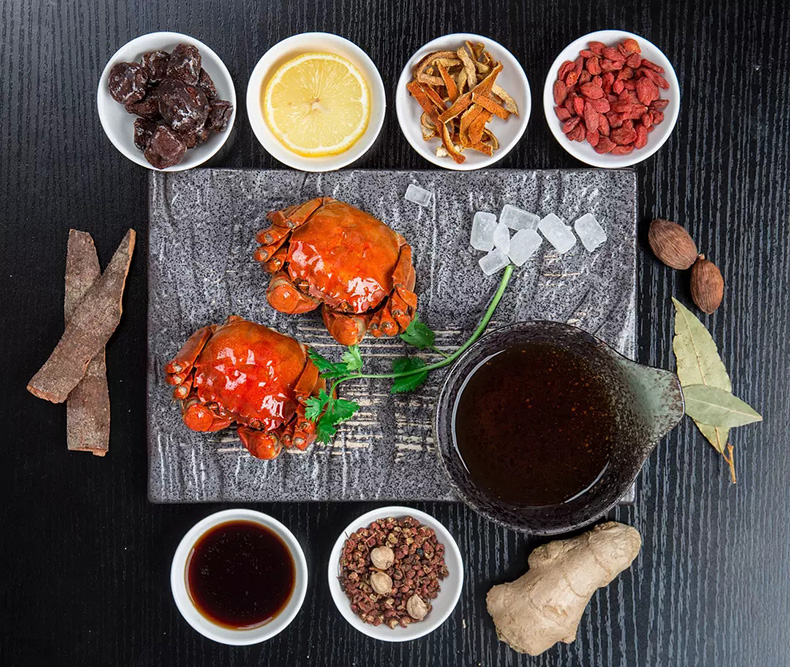 醉蟹分為生醉和熟醉。生醉是選用鮮活、大小均勻的螃蟹,簡單處理后用高度白酒去污和殺菌,然后放入醉料中生腌而成。熟醉則選用鮮活、大小均勻的螃蟹,經(jīng)過熟處理后加入醉料加工而成。蟹囧(Jiong Crab) 原生態(tài)長蕩湖醉蟹屬于后者。