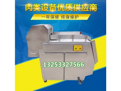高效凍肉切塊機又名切塊機、切肉機、切肉塊機、凍肉分割機、凍肉切割機等, 生產的主打肉類加工設備、該機可將原料凍肉塊分割切塊切片等是凍肉前期加工設備。該機可將-18℃的凍肉切割成小塊,便于下道工序絞肉機加工。切刀用優質合金鋼材料加工并經防腐處理;比同行其他廠家所生產同款設備使用壽命長更長久。