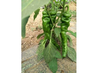 辣椒新品種,在傳統大果型辣椒基礎上推出的更耐低溫品種,果實中大果型,順直,無褶皺,果肩4.5-5.5cm,果長30cm,前后期果實大小均勻,辣味中等,肉厚,耐貯存,豐產潛力巨大,是保護地種植。
