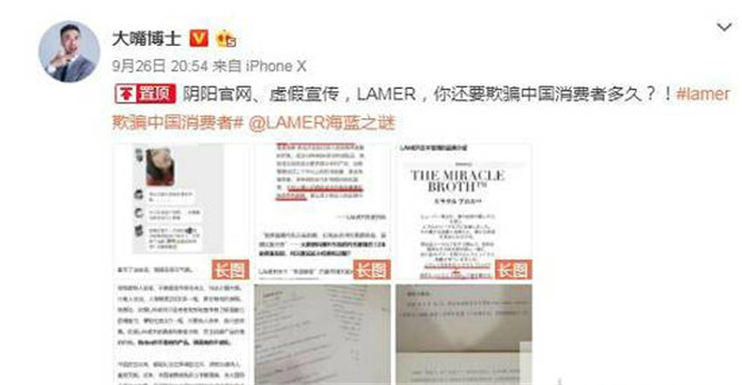 貴婦品牌LAMER被微博致命美妝博主告上法庭,原因是其虛假宣傳并不存在的修復(fù)疤痕功效,LAMER欺騙中國消費者購買,而且僅在中國虛假宣傳,該行為已嚴(yán)重違反我國廣告法。
