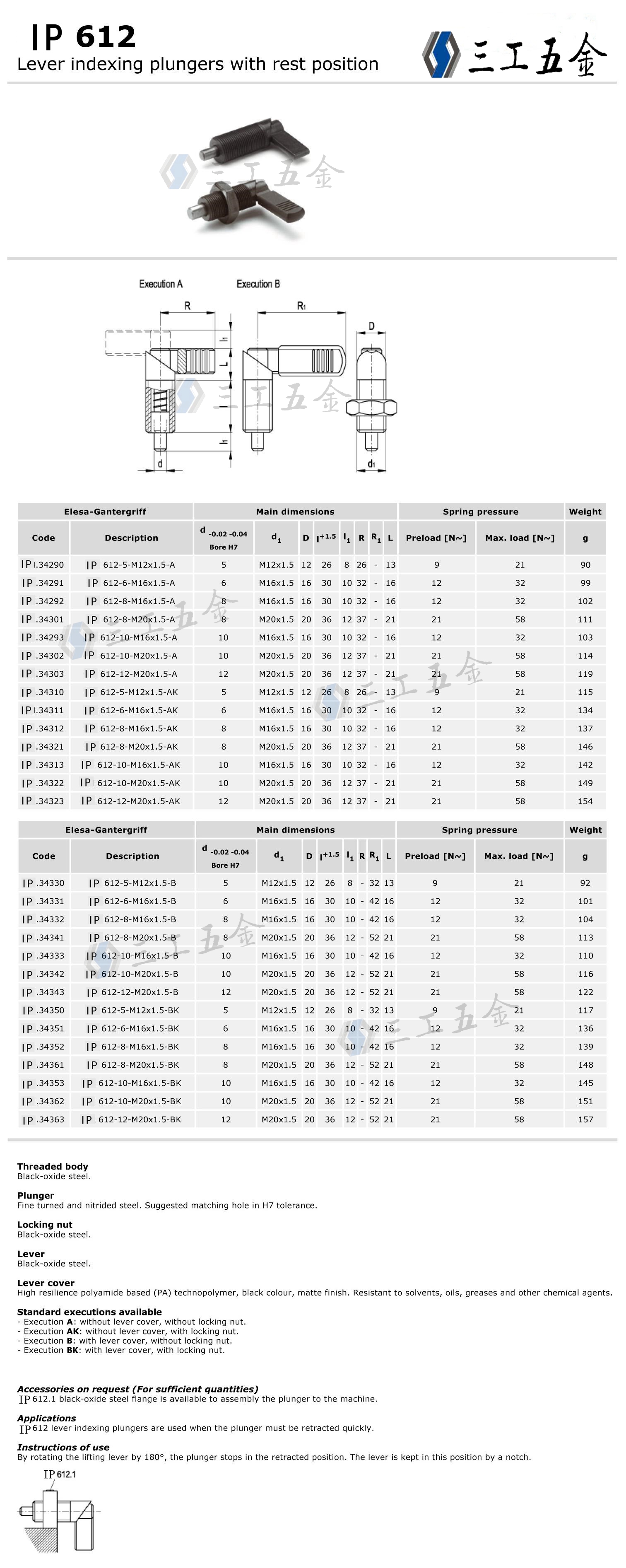 “三工五金專業生產IP612(180度旋轉)L型分度銷、分割定位柱”參數說明