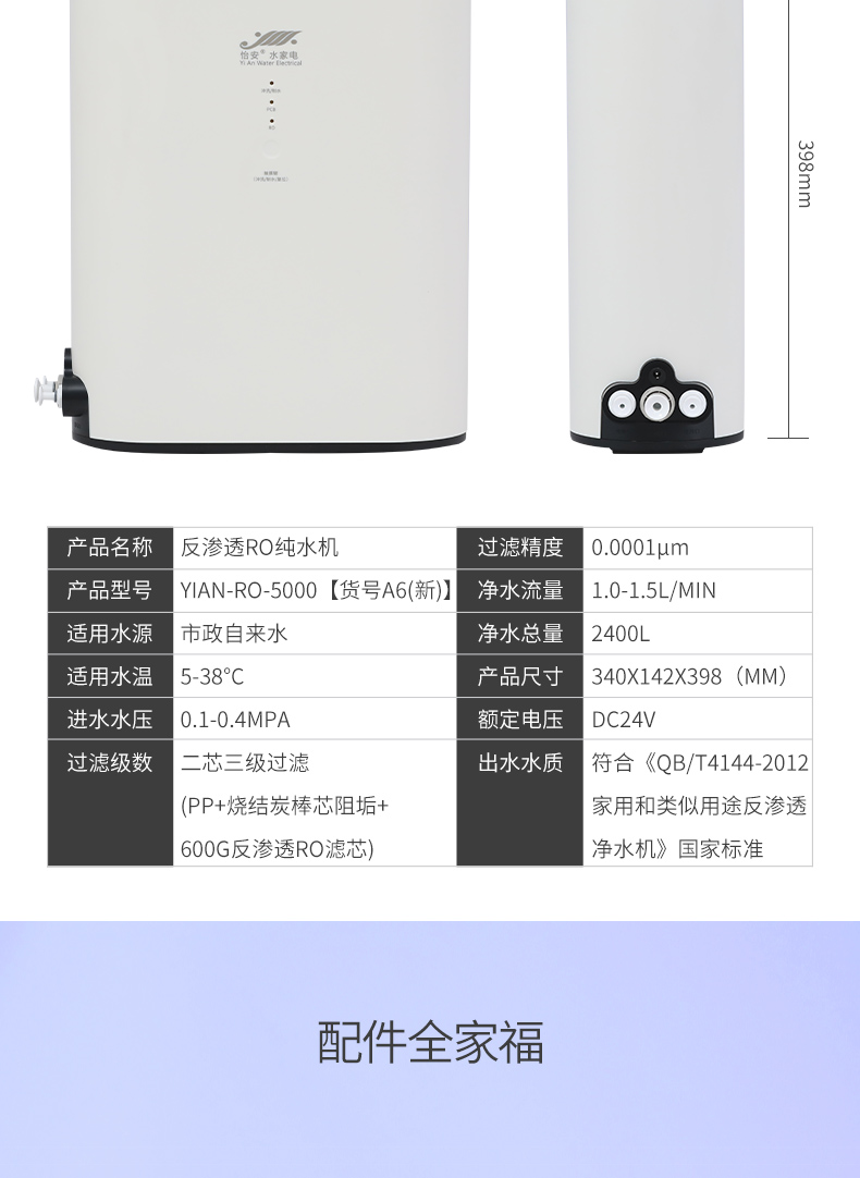 怡安凈水機(jī)家用直飲凈水器廚房自來水過濾器600G反滲透RO純水機(jī) |