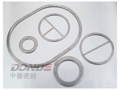 金屬包覆墊片是以非金屬材料為芯材,外部用特定的冷作工藝包覆0.25-0.5mm的金屬薄板組成的一種復合型墊片,按墊片截面通常分為平面型包覆及波紋型包覆兩種,是最傳統的一種密合墊片,金屬薄板可根據材料的的彈塑性,耐熱性和耐腐蝕性選取,主要有黃銅、鋁、軟鐵、不銹鋼、蒙乃爾合金、鈦等,非石棉芯材一般有石棉橡膠板、非石棉板、聚四氟乙烯板、石墨復合板、陶瓷纖維板等。根據不同材料可以組合成304不銹鋼包石棉包覆墊片,不銹鋼包石墨包覆墊片等多種形式。