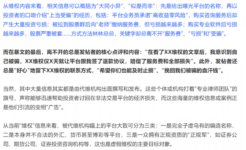證券時報券商中國等已有類似報道,打擊這一類碰瓷金融機(jī)構(gòu)的“假維權(quán),真欺詐”案例,法網(wǎng)恢恢,疏而不漏,奉勸你們這些帶著“偽善”面具,假道義幫別人維權(quán)的人,懸崖勒馬,你們可能正走在歧途上,喪良心的事少做,做惡之人必被捉。