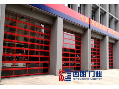 消防紅透視提升門其實就是透明提升門,把它的鋁合金框架烤漆成紅色, 并且在功能上達到一鍵開啟、警鈴聯動、停電手動打開要求。選擇透視提升門作為消防提升門的好處是:內外觀察性、采光性都很好,一眼就可以看到內部消防車隊的所有情況,又實用又氣派。