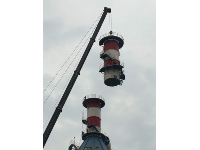 公司經營項目:各種煙囪(磚煙囪.水泥煙囪.鋼制煙囪)的新建、安裝、維修、加固、拆除、增高、混凝士外殼滑模加固,傾斜矯正,更換內襯,清洗除塵,刷航標色環,爬梯、平臺、護網、避雷針等露天金屬構件的更換加固及油漆防腐保養、煙囪、脫硫塔的環保脫硫防腐維護工程。