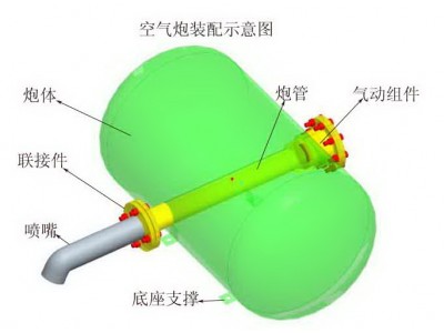 空氣炮是防止和消除各種類型料倉、料斗、水泥預熱器窯道分叉處及礦山溜井、溜坡的物料 起拱、粘倉閉塞等到現象的專用裝置。一般整套的空氣炮組件是由儲氣罐、氣缸、電磁閥以及相關的管路閥門等組成。