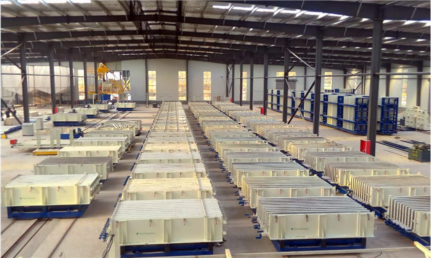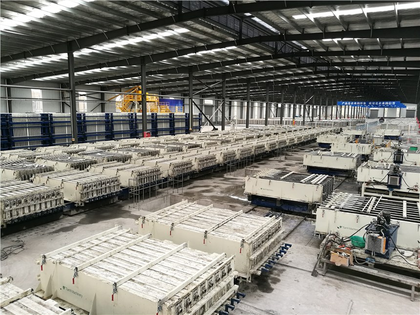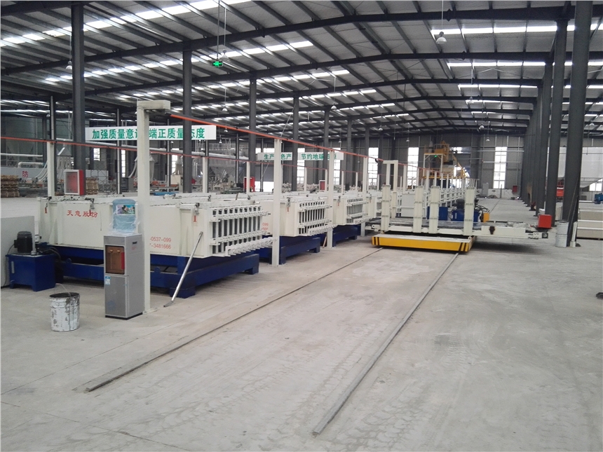 山東天意機(jī)械自主研發(fā)的TYF臥式墻板生產(chǎn)線是生產(chǎn)隔墻板的主要設(shè)備,它主要包括數(shù)控配電室,儲(chǔ)料罐,發(fā)泡攪拌機(jī),電子計(jì)量?jī)?chǔ)料倉,螺旋輸送機(jī),EPS熟化料倉,EPS預(yù)發(fā)機(jī),擺渡車等。自主研發(fā)的大型攪拌設(shè)備配有自動(dòng)配料系統(tǒng),結(jié)合材料的性能使料漿攪拌更均勻,能夠很好的融合在一起。料漿泵送系統(tǒng)更好的將攪拌好的料漿輸送到設(shè)備里面,澆注模式更簡(jiǎn)單方便。發(fā)泡系統(tǒng)采用變頻發(fā)泡技術(shù),提高了發(fā)泡速度,節(jié)省了原材料,墻板成型機(jī)自動(dòng)行走,產(chǎn)品成型速度高。該生產(chǎn)線自動(dòng)化程序高,操作簡(jiǎn)單,生產(chǎn)效率高年產(chǎn)硅酸鈣板聚苯顆粒復(fù)合輕質(zhì)墻板30萬平方米。