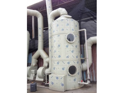 水噴淋吸收塔的塔內(nèi)氣體由風(fēng)機(jī)送入,氣體由下向上,吸收液由耐酸泵打入塔頂通過布液裝置均勻向下噴淋,形成逆流吸收,中合后的氣體經(jīng)塔內(nèi)除霧段后,經(jīng)煙筒排入大氣,不同的酸性氣體采用不同的吸收液體吸收。采用氫氧化鈉溶液作吸收中和液,當(dāng)溶液濃度2--6%時(shí)凈化鹽酸酸霧效率可達(dá)98%以上;凈化硫酸酸霧效率可達(dá)97%以上;凈化硝酸酸霧效率可達(dá)90%以上。 采用次氯酸鈉溶液作吸收中和液凈化含氰廢氣效率達(dá)95%以上。