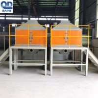 脫附工作:一段時間后活性炭內(nèi)吸附了大量的有機廢氣,催化燃燒爐開始工作,將氣體加熱對單個箱體進行脫附,這時候自活性炭內(nèi)脫出的氣體濃度已經(jīng)較之間大了數(shù)倍,經(jīng)過貴金屬高活性的氧化下,產(chǎn)生反應(yīng)燃燒也產(chǎn)生大量熱量,再生時充分利用設(shè)備自身的催化燃燒后的余熱,再給活性炭脫附,直至活性炭又脫附至一個接近全新的狀態(tài),待廢氣脫附分解完成后排入煙筒后達標(biāo)排放。