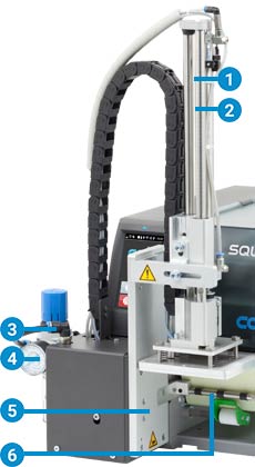 針對(duì)所有具備剝離功能的條碼打印機(jī),貼標(biāo)手臂 S1000 搭配條碼打印機(jī) SQUIX 是相當(dāng)經(jīng)濟(jì)實(shí)惠的解決方案 - 不僅可半自動(dòng)操作也能垂直建置于生產(chǎn)線上。借由舉升氣缸將標(biāo)簽貼在產(chǎn)品上。