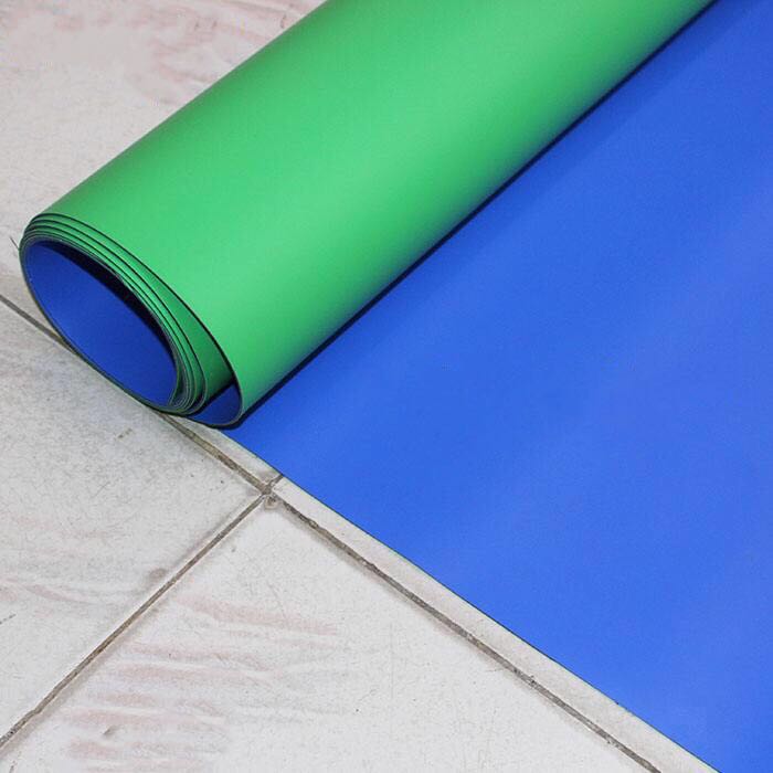 美國rosco進口摳像地板膠,幅寬1.6米,長度40米,正反兩面,藍色一面,綠色一面。摳像地膠表面平整,使用高密度地膠制成,配合美國進口5710#,5711#,5721#等現有摳像漆,適合于任何平整地面鋪設。在普通摳像或用于摳像網格追蹤,網格定位有較好的摳像效果。避免了以前木質藍箱和玻璃鋼藍箱地面不能長時間使用、重復刷漆,主持人不能穿高跟鞋等一切不利于腳踏的難題。適合于電視臺、氣象局、影視摳像類, 易清潔,免維修,不怕水浸和油污,等化學物質的侵蝕,一般用濕拖布清掃即可,省時省力。安裝后無需打蠟,只需一般日常保養便可光潔如新