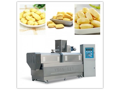 該設(shè)備從原料配制、擠壓膨化、夾芯、成型、切斷、噴涂、調(diào)料到出成品一次完成。由 - 原料攪拌,膨化生產(chǎn),外形處理,烘干,調(diào)味及輸送設(shè)備組成。