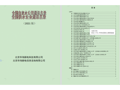 《全國(guó)自來(lái)水廠名錄》收錄了2020年前投產(chǎn)的自來(lái)水廠3000余家。信息內(nèi)容包含:自來(lái)水廠名稱、法人、各科室聯(lián)系人、郵編、地址、處理工藝、投產(chǎn)時(shí)間、。