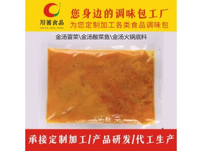 四川川菁食品科技有限公司是一家集調(diào)料生產(chǎn),調(diào)料批發(fā),調(diào)味料加工,定制貼牌工廠,公司生產(chǎn)的金湯酸菜魚調(diào)料,色澤誘人,酸辣可口,可定制生產(chǎn),貼牌代加工。