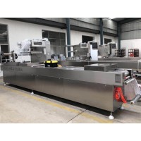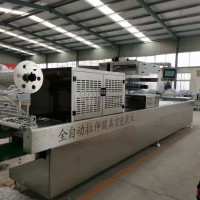 工作原理是使用成形模具,先把薄膜加熱,而后再用成形模具沖成容器的形狀,然后將包裝物裝入成型了的下膜腔中,再進行真空包裝。主要由真空系統、抽充氣密封系統、熱壓封合系統、電器控制系統等組成。