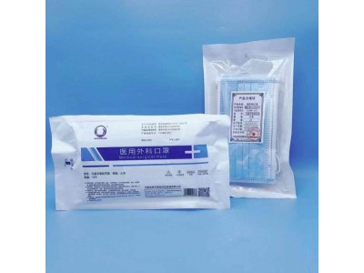 醫用外科口罩由口罩體、鼻夾、口罩帶組成;其中口罩體由面層、濾層、里層組成;面層和里層采用紡粘非織造布制成,濾層由熔噴材料制成。