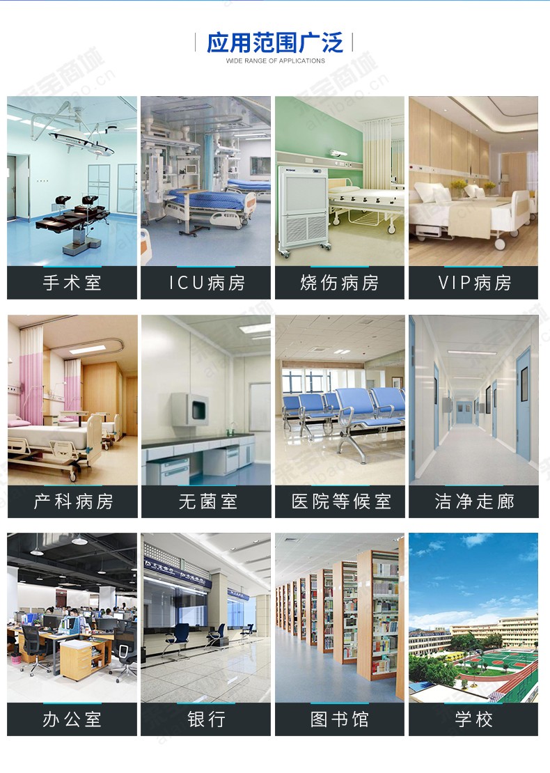 醫用氣溶膠吸附器目前主要有三種外觀,壁掛式氣溶膠吸附器,吸頂式氣溶膠吸附器,移動式氣溶膠吸附器,氣溶膠吸附器具有良好的空氣凈化效果,氣溶膠吸附器配備初效和高效過濾器,46m3左右的房間開機兩個小時可以達到萬級的空氣潔凈效果,局部區域可以達到百級潔凈度要求;移動式氣溶膠吸附器比較方便,不管在使用還是安裝上都計較簡單;氣溶膠吸附器標配紫外殺菌燈可以起到殺菌消毒工作;