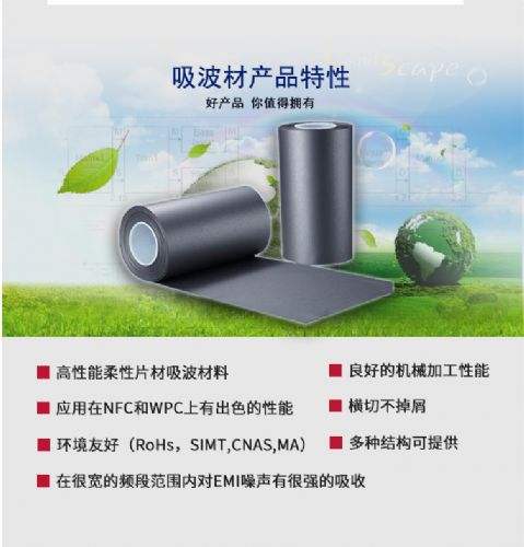 - 貼于屏蔽容器內(nèi)部,解決交叉串?dāng)_問題,吸收電磁波反射,降低電磁波對元器件的干擾;應(yīng)用于電路板或元器件之間,抑制、減小彼此間電磁耦合;貼于輻射源元器件表面,抑制電磁輻射;包覆FPCB柔性電路板、高速信號線,抑制傳導(dǎo)輻射;貼或復(fù)合于RFID標(biāo)簽中,提高可讀識性及靈敏度。