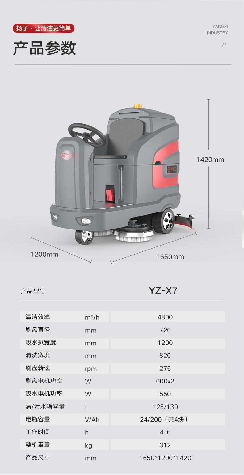 大型駕駛式洗地機(jī) 揚(yáng)子X7雙刷電動(dòng)洗地機(jī)工廠車間機(jī)場(chǎng)可用