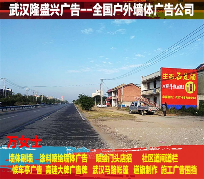 我 們為您制作發布:湖北墻體廣告、武漢墻體廣告、孝感墻體廣告、咸寧墻體廣告、黃石墻體廣告、黃岡墻體廣告、鄂州墻體廣告、荊州墻體廣告、荊門墻體廣告、潛 江墻體廣告、宜昌墻體廣告、隨州墻體廣告、天門墻體廣告、仙桃墻體廣告、潛江墻體廣告、