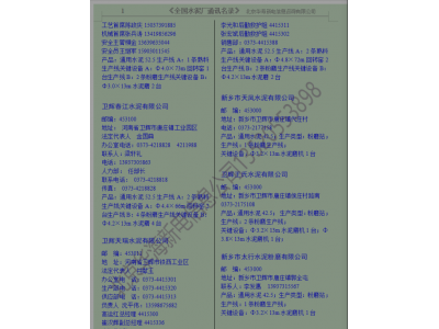 《全國水泥廠通訊名錄》由北京華海新電科技有限公司在2002年 開始發行,到今年已經走過了17個年頭,期間得到廣大新老客戶的支持幫助,在此一并致謝!《全國水泥廠通訊名錄》一直在更新,每年都會編輯進去新投產的水泥廠,停產的機組,產能出讓的廠家也會標注出來。水泥廠屬于產能過剩的行業,這幾年一直在兼并重組,產能轉讓,關停并轉,企業名稱一直在變,本資料只提供企業當前的名稱。本書內容包括:全國31個省市地區的水泥企業3800多家。大、中、小型水泥生產企業(水泥廠、熟料廠、粉磨站)的地址、郵編、投產時間,產品,主機設備,重要科室負責人的姓名、聯系電話及部分。是企業聯系客戶的重要資料。