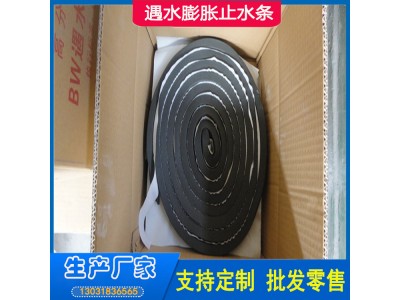 以進口特種橡膠、無機吸水材料、高粘性樹脂等十余種材料經密煉、混煉、擠至而成而成的一種止水條產品,它是在國外產品的基礎上研制成功的一種斷面為四方形條狀自粘性遇水膨脹型止水條。依靠其自身的粘性直接粘貼預置在混凝土施工縫、后澆縫的界面上,二次澆注混凝土后(即被砼包裹的狀態下)。