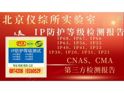 北京儀綜所檢測中心提供IP68水等級認證,IP65防護等級測試服務(wù),提供國家認可的第三方檢測報告,CNAS和CMA檢測報告。