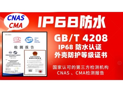 北京儀綜所實驗室是具備CNAS和CMA資質的第三方檢測機構,是國家認可的省部級以上的檢測機構,按照GB/T4208-2017和IEC60529標準進行IP68防水認證,出具檢測報告。
