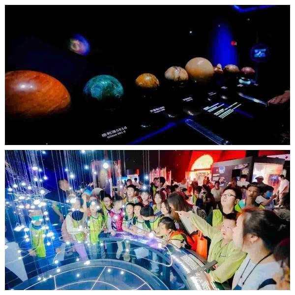 首先,我們走進了家園展區(qū),開啟問天之旅,探究太陽系各星球,以及太陽、地球、月球的誕生演變和它們之間的關(guān)系。