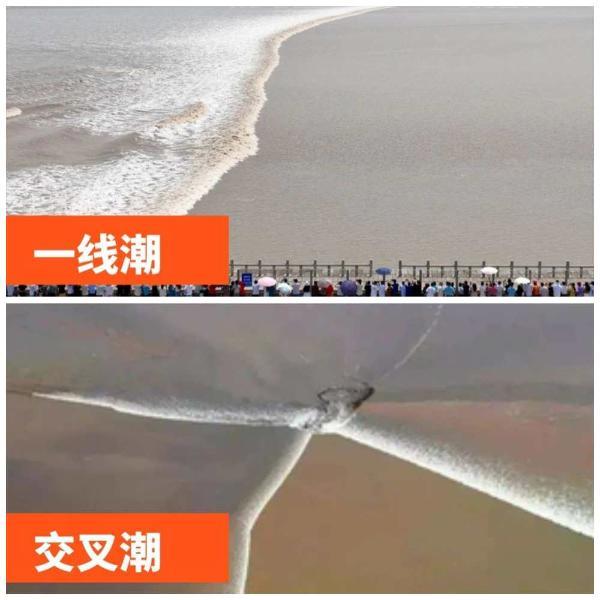 交叉潮:由于長(zhǎng)期的泥沙淤積,在江中形成一個(gè)沙洲,傳來的潮波分成兩股,即東潮和南潮,兩股潮頭在繞過沙洲后,就像兩兄弟一樣交叉相抱,形成變化多端、異常壯觀的交叉潮,呈現(xiàn)出"海面雷霆聚,江心瀑布橫"的壯觀景象。