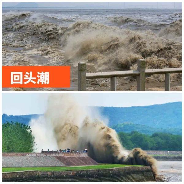 回頭潮:咆哮而來的潮水遇到障礙后會(huì)被反射折回,在那里它猛烈撞擊對(duì)面的堤壩,然后以泰山壓*之勢(shì)翻卷回頭,落到西進(jìn)的急流上,形成一排"雪山",風(fēng)馳電掣地向東回奔,聲如獅吼。