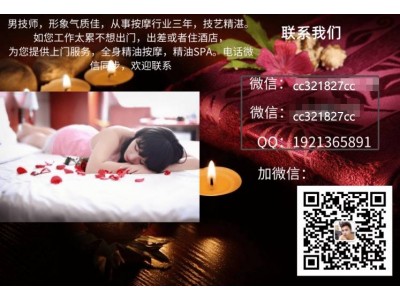 微信:cc321827cc QQ:1921365891 南寧男按摩師,帥哥型男上門精油,推油按摩,南寧異性,spa按摩,專業(yè),南寧男按摩技師,夫妻按摩,精油推油按摩spa護理師為南寧女士上門服務(wù): 中醫(yī)經(jīng)絡(luò)推拿,全身精油香薰按摩,足底按摩,生理調(diào)理,減肥美體,香熏spa水療,常見病的恢復(fù)理療,本人學(xué)的針灸推拿專業(yè),技術(shù)手法獨到,按摩經(jīng)驗豐富,職業(yè)道德良好, 是您的私人健康護理專家.歡迎預(yù)約上門享受專業(yè)的按摩護理,滿足您的健康需求.請?zhí)崆邦A(yù)約cc321827cc《只為女士服務(wù),非誠勿擾!》 全天24小時提供服務(wù) 專業(yè)技師 值得信賴 帥氣的南寧男技師為您提供優(yōu)質(zhì)丶專業(yè)的上門SPA推油按摩服務(wù) 格守職業(yè)道德,保守客戶隱私,讓您足不出戶可享受到安全,健康,貼心,溫馨的南寧男按摩技師上門按摩服務(wù)! 更多服務(wù)歡迎來電咨詢預(yù)約 QQ:1921365891微信:cc321827cc 南寧男技師上門按摩為在南寧女士提供上門巴厘島spa推油護理服務(wù)。全市以上酒店以及公寓皆可在預(yù)約半小時內(nèi)到達。 南寧男技師按摩會所,南寧男技師上門按摩,南寧男模spa,南寧帥哥spa按摩,南寧男技師spa,南寧女子休閑會所,南寧巴厘島spa,南寧女士spa等等南寧男技師按摩會所,夫妻情趣按摩, 南寧男技師上門按摩,南寧男模spa,南寧帥哥spa按摩,南寧男技師spa,南寧女子休閑會所,南寧巴厘島spa,南寧女士spa