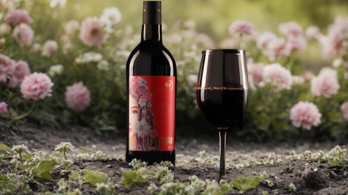 香港知名演員、歌手翁虹自創紅酒品牌緋虹絲路酒莊干紅葡萄酒。