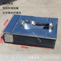 不銹鋼發泡蹲便器上加了電控裝備箱,使電器和水箱隔離,防潮濕性能更加安全,穩定,且發泡控制;采用先進光纖傳感器,使產品性能更加穩定.