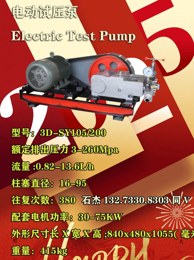 使用時,**將連接套套在高壓管上,然后將高壓管與試壓泵的出口對接,將試壓泵的出口插入高壓管中,隨后將壓緊塊的壓緊側與高壓管相抵,然后再推動連接套,連接套的弧形面擠壓壓緊塊的擠壓側,從而使得壓緊塊擠壓高壓管,從而使得高壓管不易掙脫,然后將連接套與支撐塊螺紋連接固定,完成完成,非常方便,當需要拆卸時,只需將連接套與支撐塊螺紋拆卸,朝高壓管一側推動連接套,然后只需將高壓管拉出即可完成拆卸,安裝和拆為了更清楚地說明電動試壓泵新型實施例中的技術方案,下面將對實施例描述中所需要使用的附作簡單地介紹,顯而易見地,下面描述中的附僅僅是電動試壓泵新型的一些實施例,對于本**域普通技術人員來講,在不付出創造性勞動的前提下,還可以根據這些附獲得其他的附。