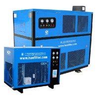 壓縮空氣首先進(jìn)入預(yù)冷器進(jìn)行初步冷卻,在流入回?zé)崞鳎c回流的成品氣進(jìn)行熱交換,使壓縮空氣進(jìn)一步降溫,并將冷凝出的水排出機(jī)外。之后,壓縮空氣流入蒸發(fā)器,與冷媒進(jìn)行熱交換,使壓縮空氣進(jìn)一步降溫,達(dá)到符合要求的露點溫度。