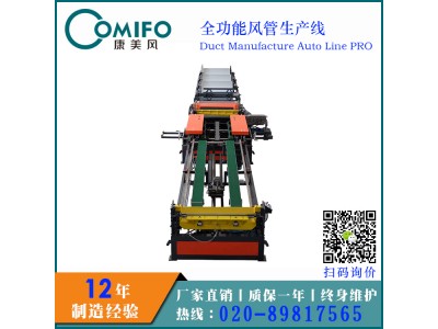 此風管生產線是我司銷量最大的設備之一,直線型加工,占地面積小,生產效率高,只需一名操作人員,直接輸入尺寸,生產線自動完成,日加工能力可達2000平方米,適合風管規?;?/span>加工。