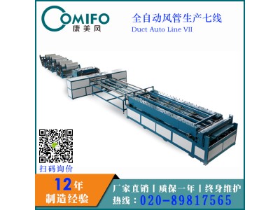 康美風(fēng)全自動(dòng)風(fēng)管生產(chǎn)七線(歐式GDF法蘭風(fēng)管生產(chǎn)線)由四個(gè)料架,調(diào)平壓筋,沖方口,沖尖角,折邊,剪切,專利型升降轆骨機(jī) (可實(shí)現(xiàn)剪切,聯(lián)合角成型,直角骨成型三位一體),雙聯(lián)GDF法蘭成型機(jī),送料平臺(tái)(可選),液壓折邊合口機(jī)組成。采用全電腦PLC控制,觸摸屏操作,可根據(jù)操作要求設(shè)置任意尺寸進(jìn)行下料,該生產(chǎn)線最大加工速度為18米/分,精度為:長度誤差± 0.5mm,對角線誤差為± 0.5mm, 標(biāo)準(zhǔn)開料架承重5噸,可根據(jù)客戶要求配套。可生產(chǎn)出“L”、“口”型帶咬口、TDF共板法蘭、折邊的風(fēng)管。全自動(dòng)風(fēng)管生產(chǎn)線占地面積小,直線型加工,生產(chǎn)效率高,適合規(guī)模化風(fēng)管加工。