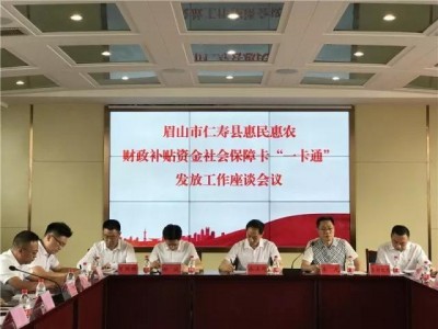 2019年6月18日,四川省眉山市惠民惠農財政補貼資金社會保障卡“一卡通”發放在仁壽縣正式首發補貼資金1.4億元,當天32萬5千余名農戶第一次通過社??I取2019年度耕地地力保護補貼。這是繼樂山市作為四川省惠民惠農財政補貼資金“一卡通”樣板推廣城市后,又一采用“系統+服務”模式僅用一個月就實現項目快速落地的地市。