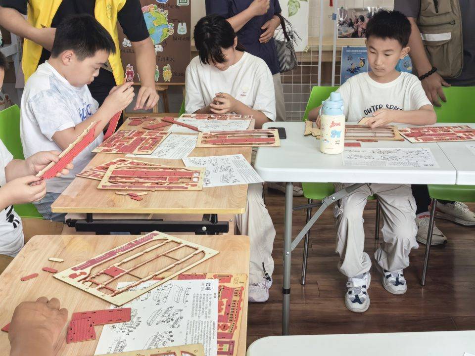 孩子們在老師指導下,一步步拆解模型件、研讀說明書、協作拼插,不僅鍛煉了動手能力,更在組裝過程中深入理解了紅船的結構與歷史意義。