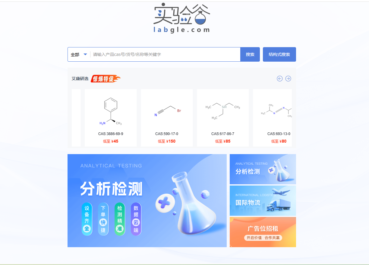 在實驗谷平臺上,可以通過CAS號、貨號、中/英文名稱、分子式、結構式等多種方式檢索日常實驗工作中所需的貨品信息資源以及平臺供應商信息(化工廠、試ji公司、化工企業、供求信息、價格等)。無論您是科研/學術研究人員、實驗室,還是教育機構,實驗谷都能滿足您的實驗需求。
