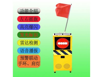 便攜式聲光搖旗機(jī)器人主要應(yīng)用于道路施工或維護(hù)作業(yè),防止發(fā)生事故, 為工作人員筑起一道生命的防護(hù)墻。
